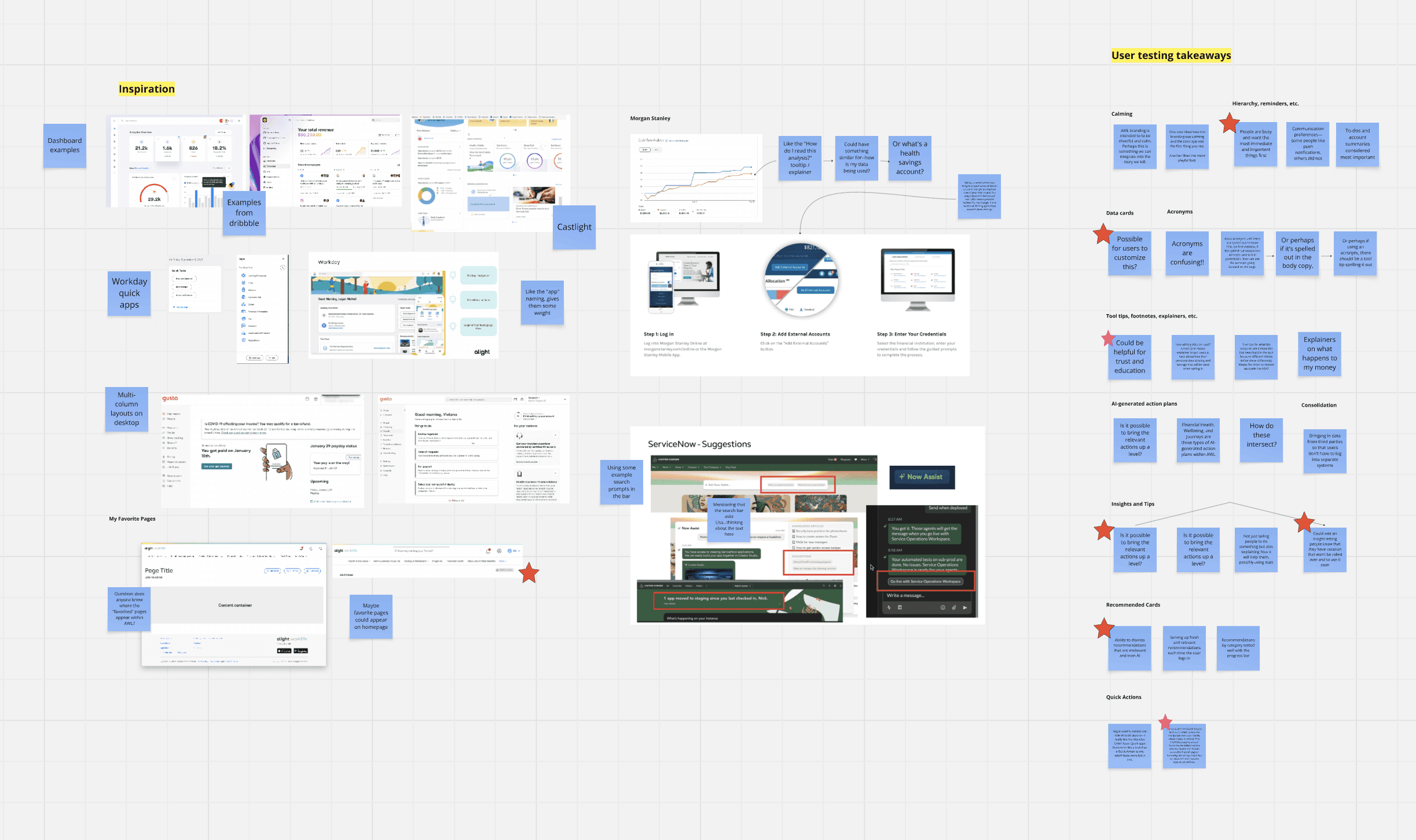 Combined visual of early research inputs—including stakeholder feedback, competitive references, and usability takeaways.