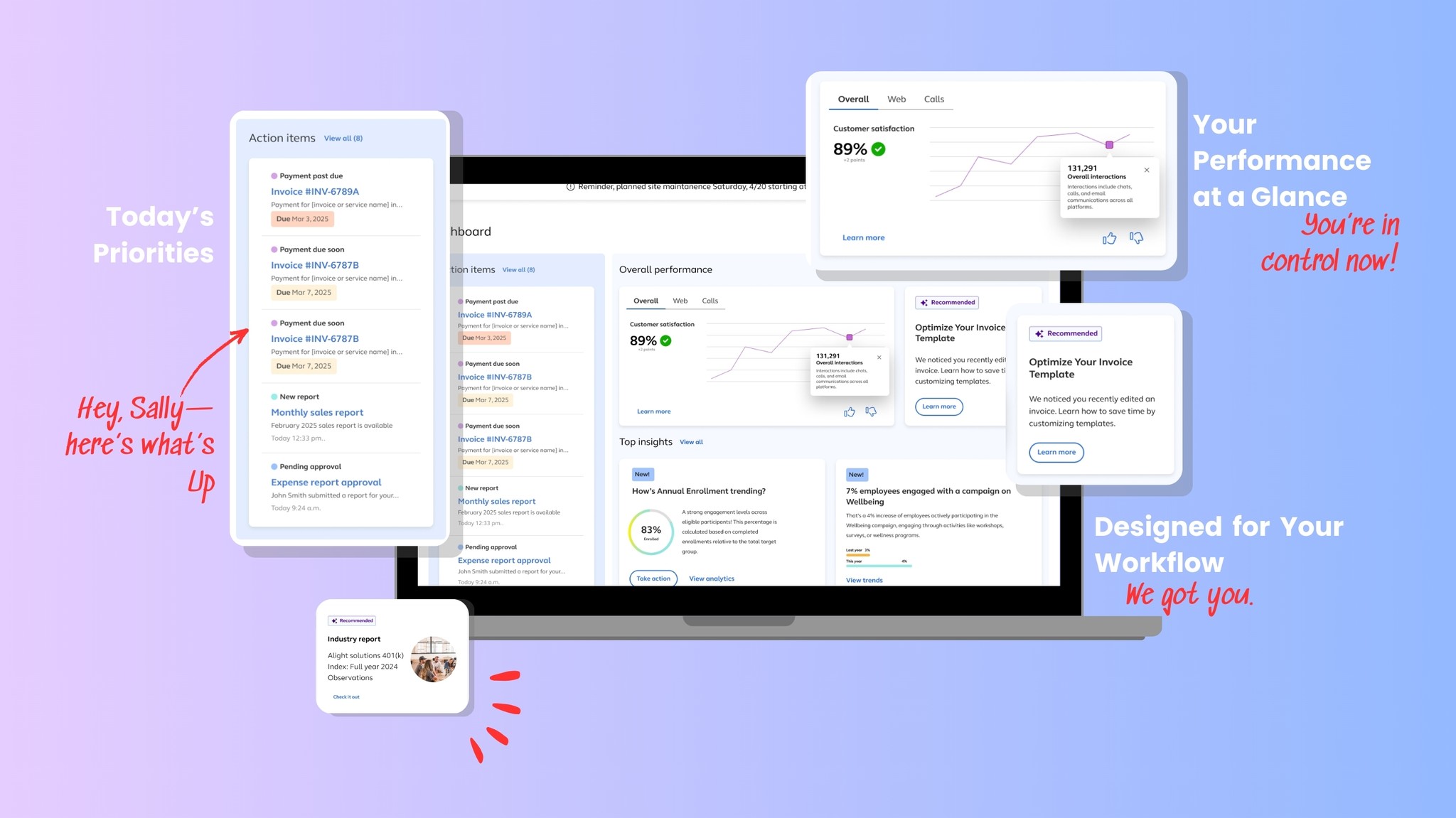 “Sally sees a trend, takes action, and sees impact—all from her homepage.”