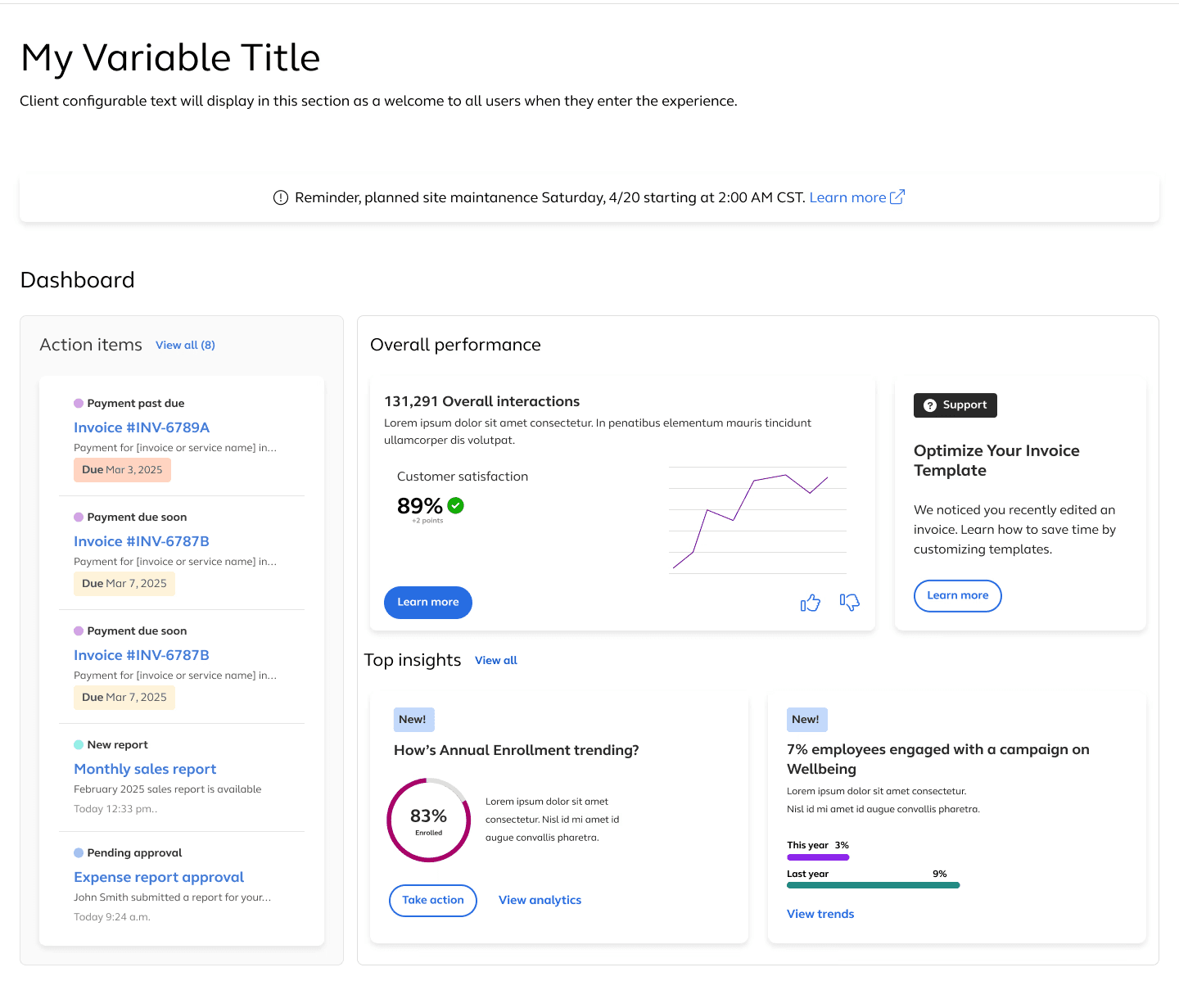 The Control Center is a foundational internal platform employers use to manage employee programs, benefits, and content. While robust in function, its homepage had grown into a fragmented patchwork of static data and competing priorities—leading to cognitive fatigue and low engagement.