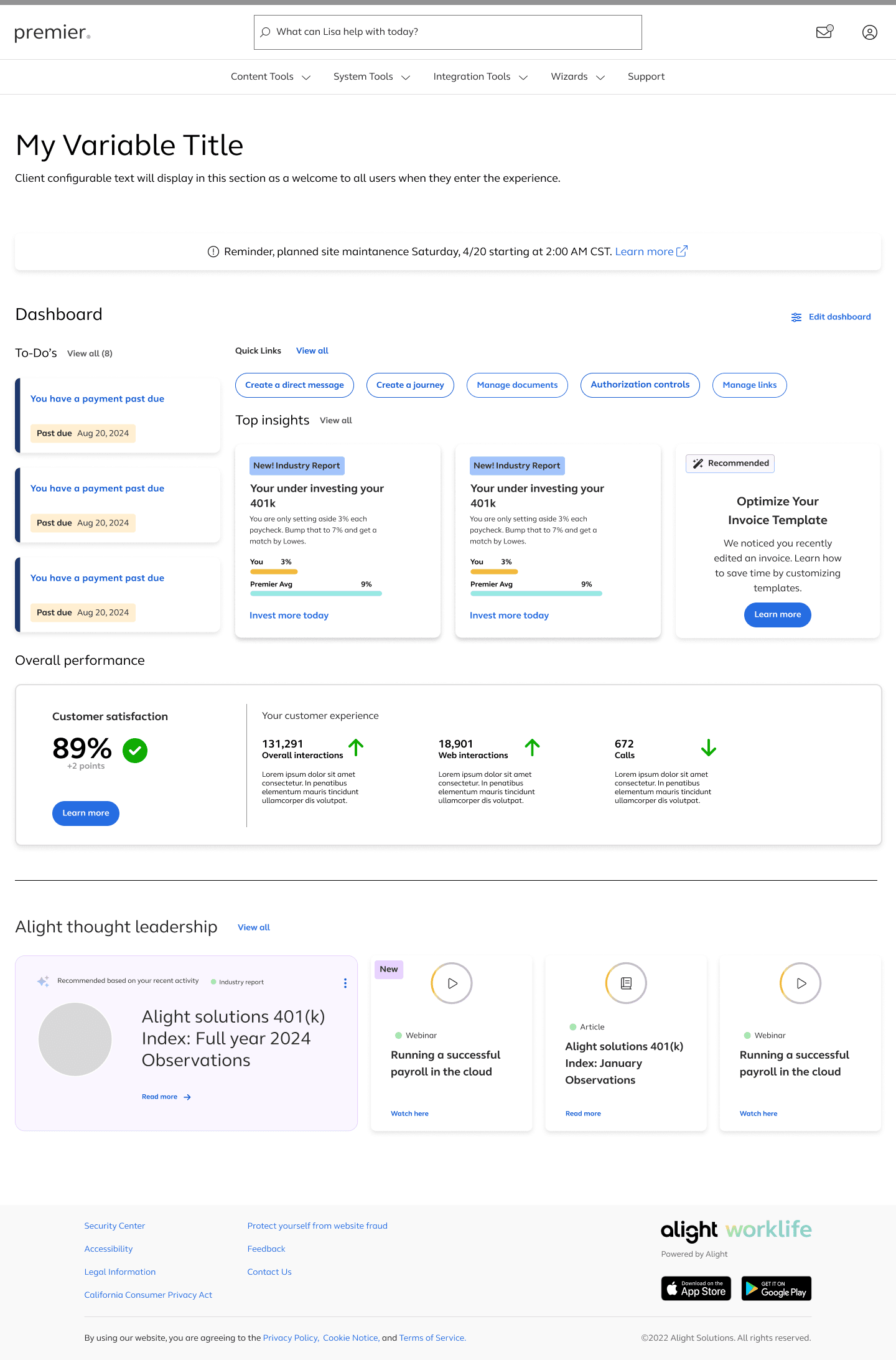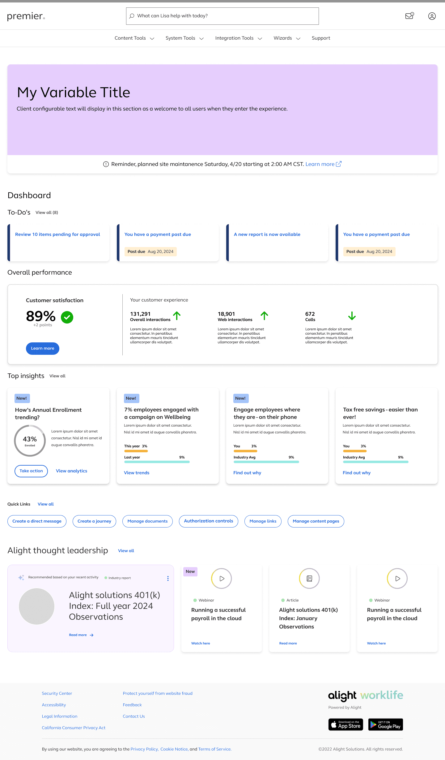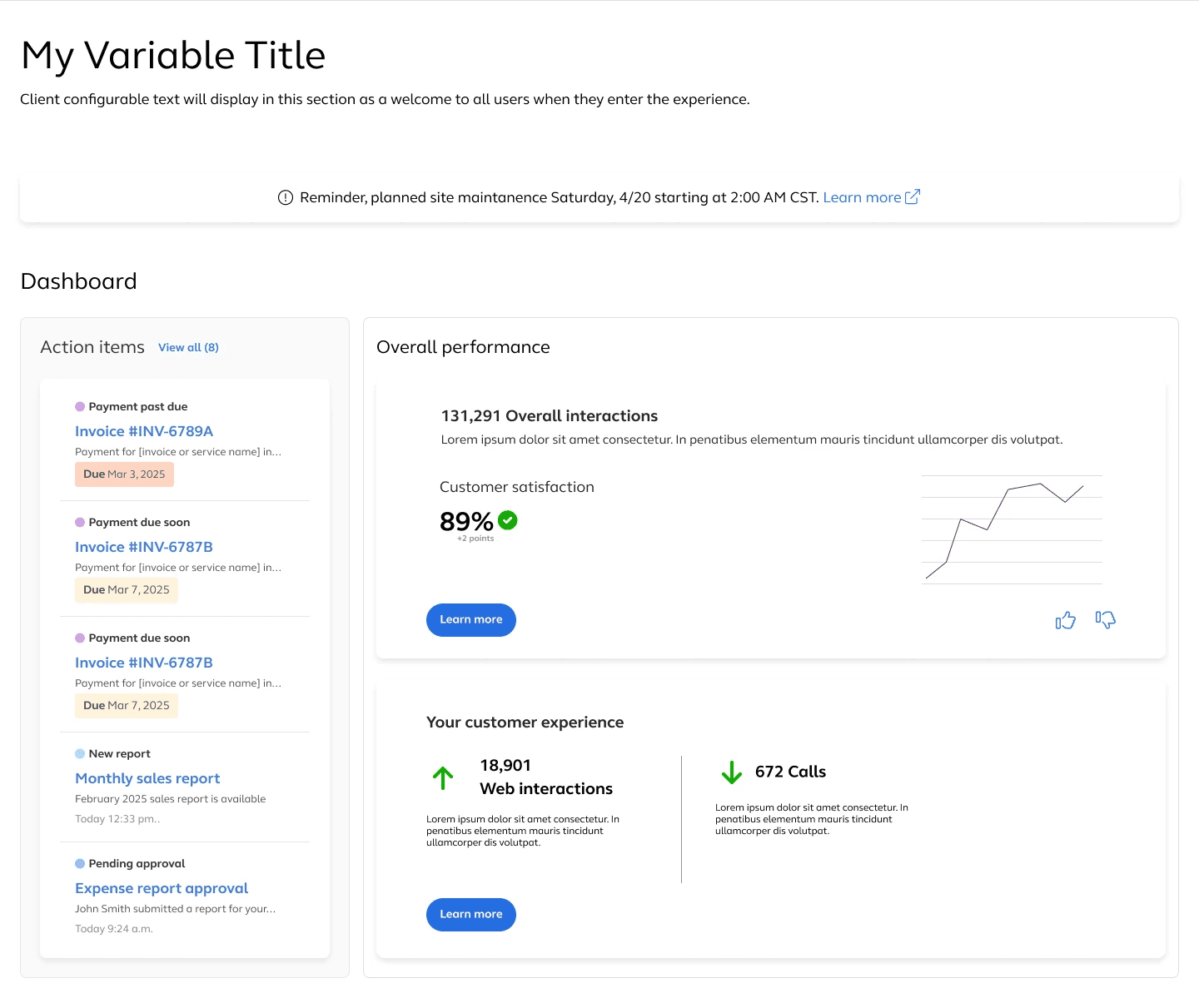 I explored multiple layout variations to balance clarity, data density, and action visibility. These explorations helped validate the structure of the Action Center, insight cards, and quick-link tools.